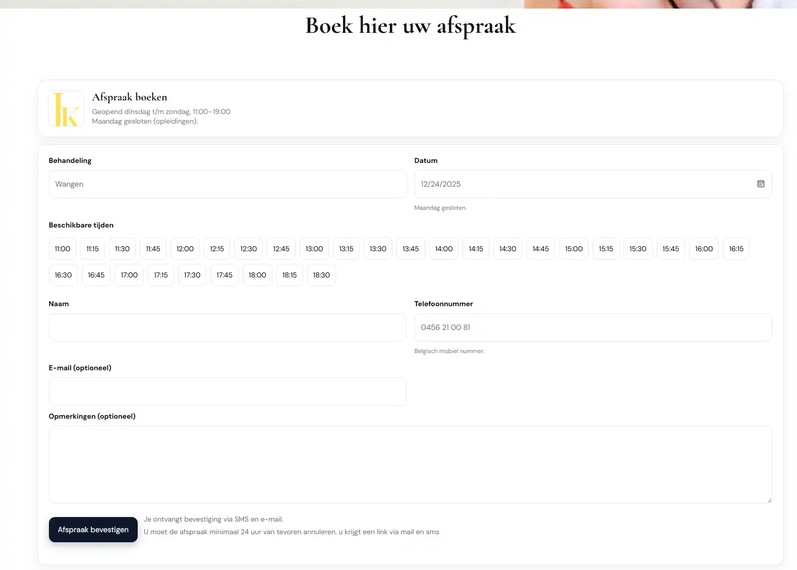 I implemented and customized a fully functional booking system tailored specifically for clinic appointments, including: