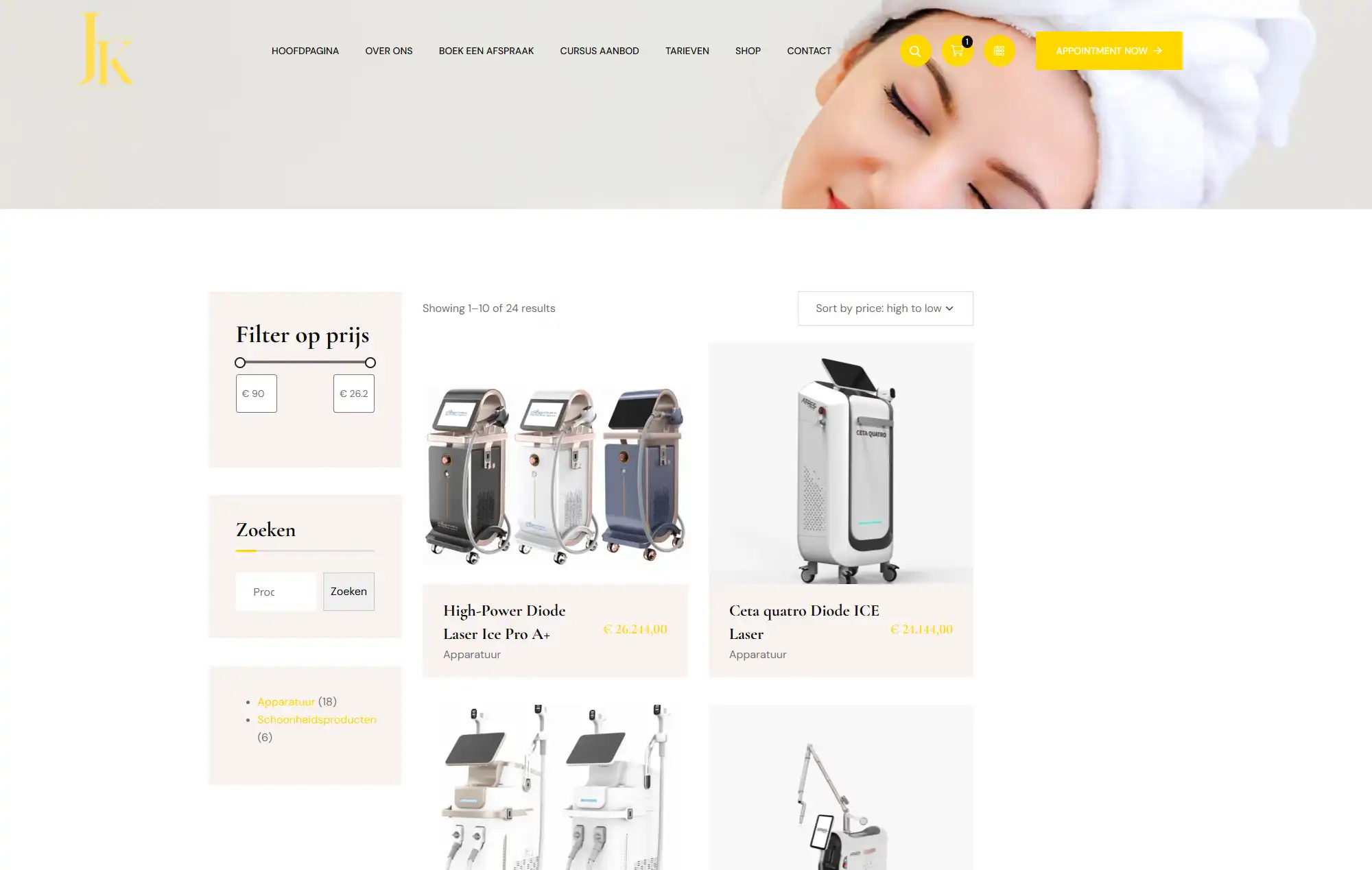 I set up and customized a WooCommerce shop to allow the clinic to sell beauty products and equipment directly through the website, including: